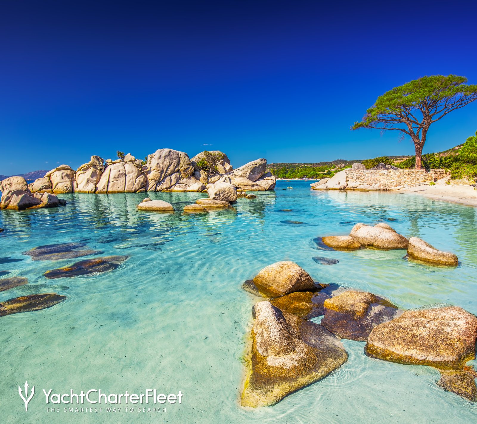 For nights not spent at the marina, there is a myriad of pretty anchorages to be found in secluded coves and sheltered bays all around the coastline of this beautiful island. The bay of Pinarellu Bay is sheltered from the winds from northwest to southerly and is especially popular with the yachting elite due to its good anchoring in shallow sandy waters.