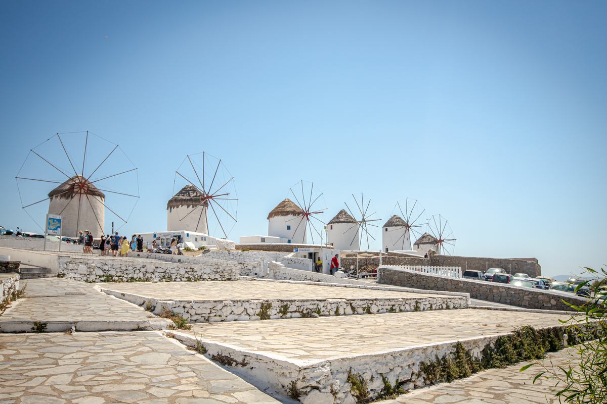 • Mykonos Windmills: These iconic windmills stand proud against a cornflower-blue sky, harking back to an era when wind power was used to grind grain.