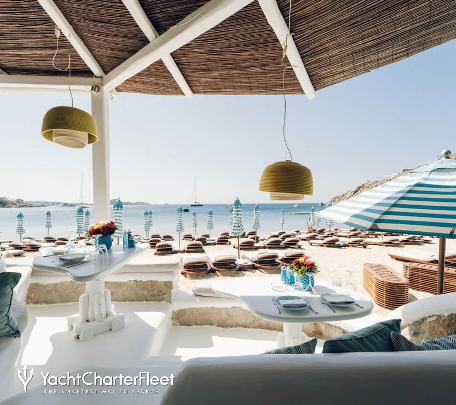 Most yacht charters generally commence in the marina adjacent to Mykonos' Old Town of Chora, located on the island's northwest flank. The town is conveniently close to a number of major attractions, including the tiny island Delos and the famous hilltop windmills, as well as a number of beautiful beaches only accessible by boat. In the south is where you'll find the island's celebrated beach clubs and non-stop party vibe, making this an ideal stop-off for those keen on continuing revelries from dusk till dawn.